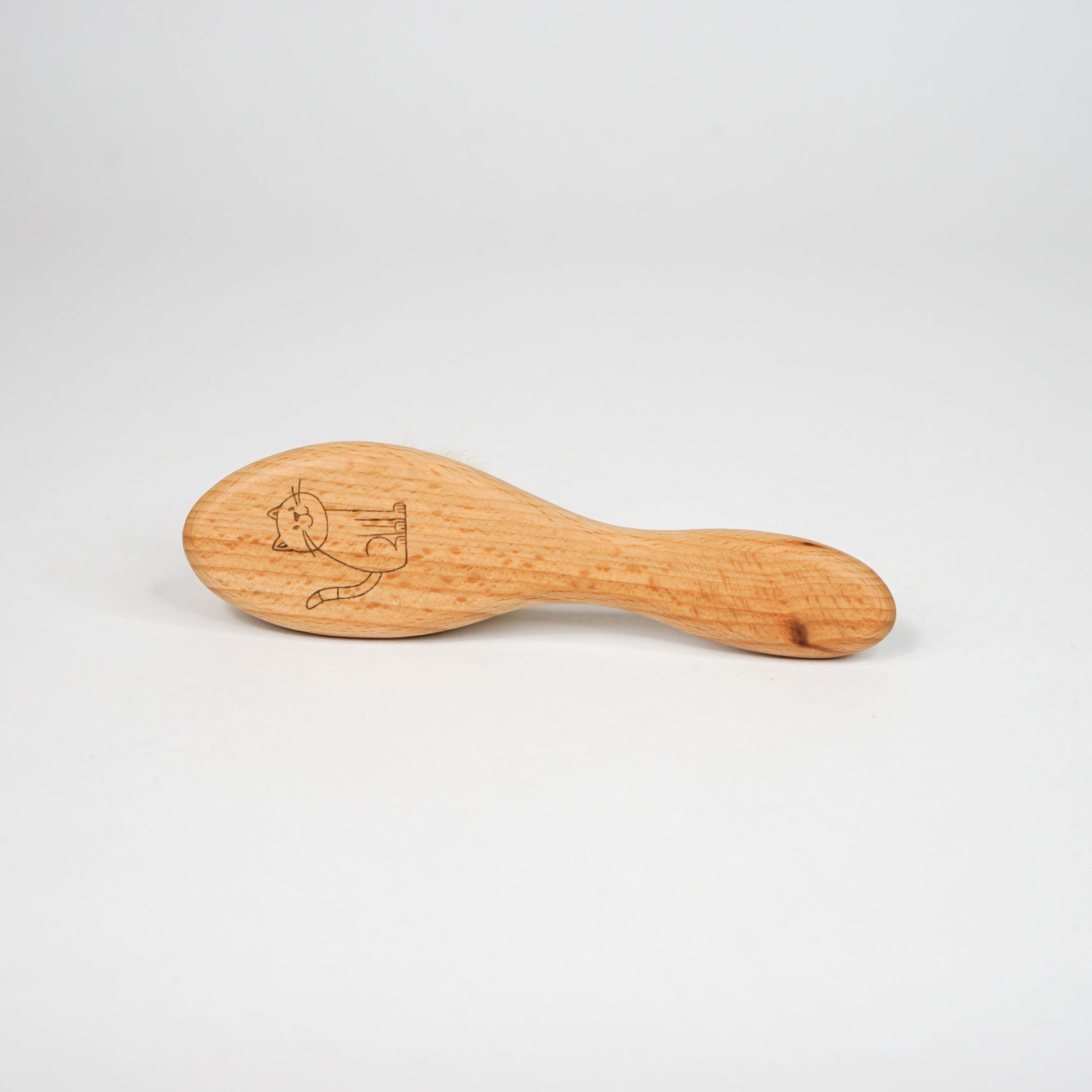Babyhaarbürste aus Buchenholz mit Katzenmotiv