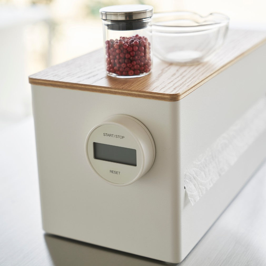 Der Küchenrollenhalter Weiß aus der RIN-Serie von Yamazaki vereint zeitloses Design, hohe Funktionalität und feinste Materialqualität. Mit seiner eleganten Kombination aus weiß lackiertem Stahl und einer warmen Holzoberfläche setzt er stilvolle Akzente in modernen Küchen und Wohnbereichen.