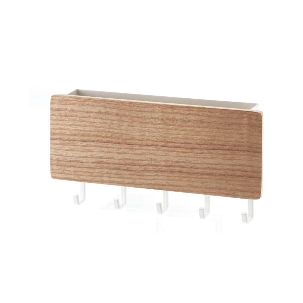 Mit fünf stabilen Haken bietet das Schlüsselbrett Platz für Schlüsselbunde, Schlüsselanhänger oder kleine Accessoires. Das obere Ablagefach eignet sich ideal für Post, Notizen oder andere Alltagsgegenstände, die Sie griffbereit halten möchten.