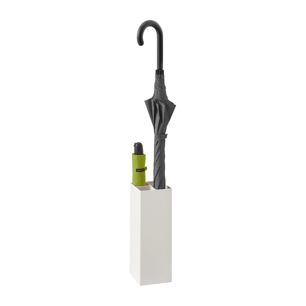 Der aus robustem Stahl gefertigte Schirmständer besticht durch seine schlichte, elegante Form und den modernen weißen Look. Die stabilen Polypropylen-Schalen lassen sich je nach Bedarf variabel positionieren und sind leicht zu reinigen – ideal für den täglichen Gebrauch.