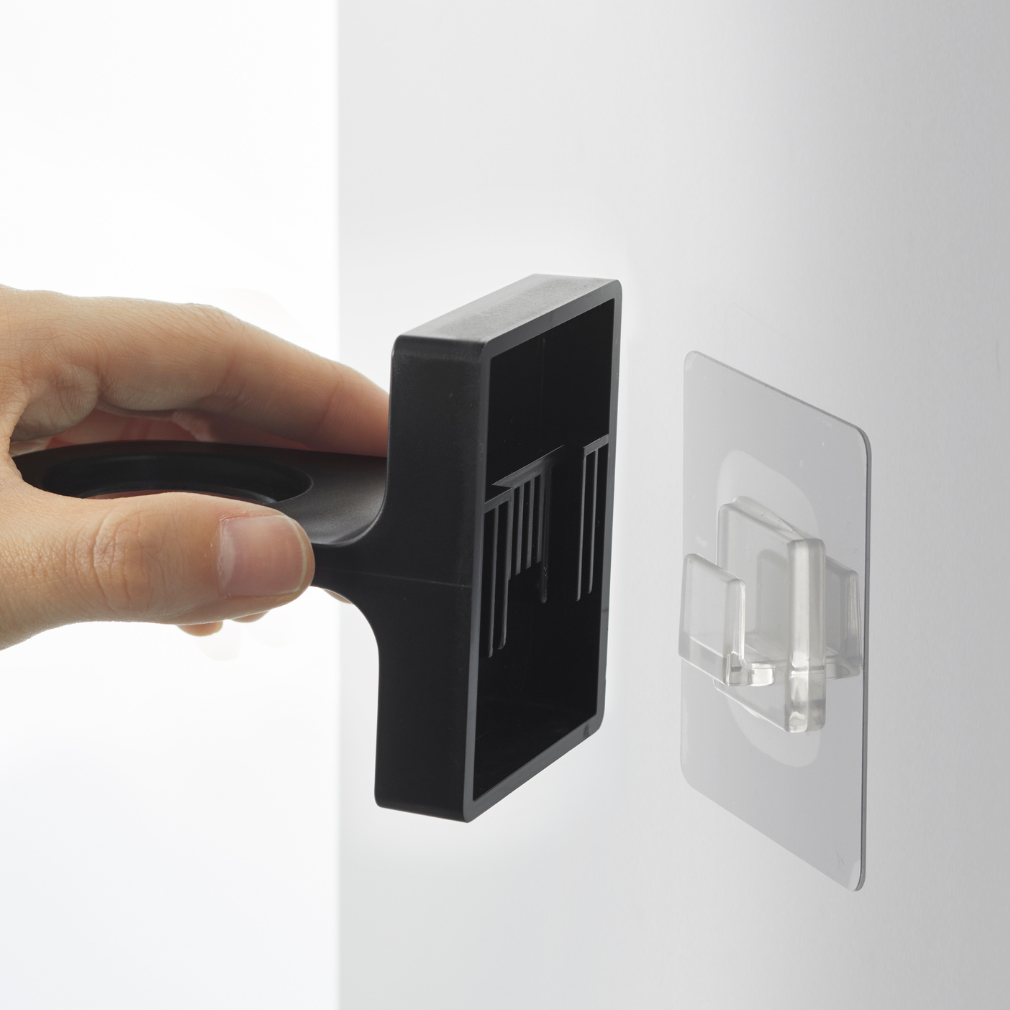 Dank des selbstklebenden Hakens lässt sich der Halter einfach an glatten Oberflächen wie Fliesen oder Glas befestigen – ganz ohne Bohren. Er sitzt stabil und bietet sicheren Halt für den täglichen Gebrauch.
